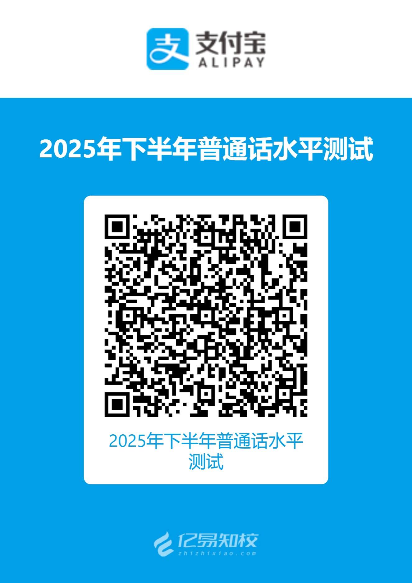(1)打开支付宝,扫码“2025年下半年普通话考试报名”支付二维码: